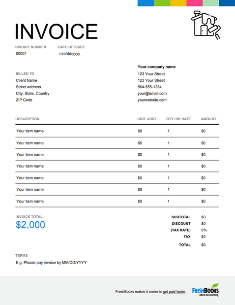 With the help of the free invoice template from FreshBooks, creating a painting job invoice has never been easier. It’s time to get paid for your amazing work.